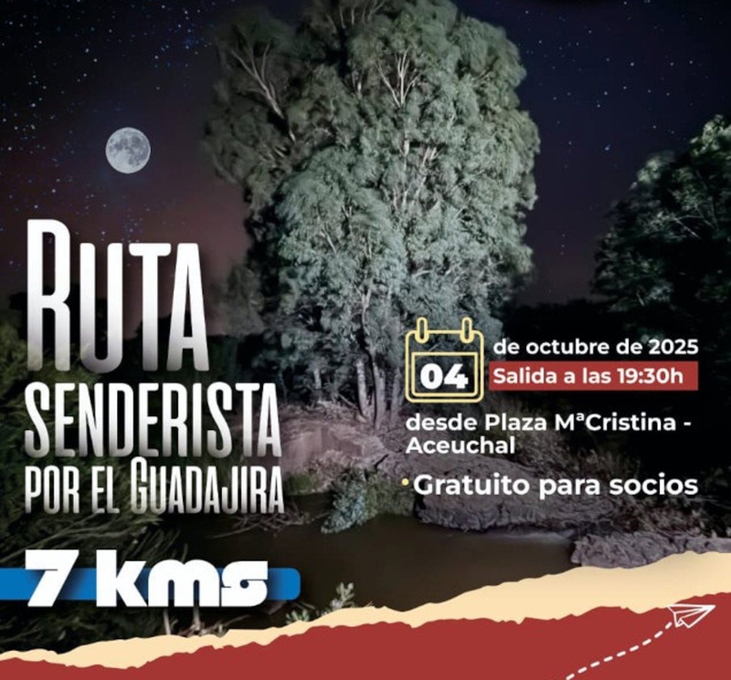 El Centro de Estudios del Patrimonio del Guadajira (CEP Guadajira) organiza una ruta senderista nocturna por el entorno del río Guadiana el próximo 4 de octubre con salida desde la localidad pacense de Aceuchal.