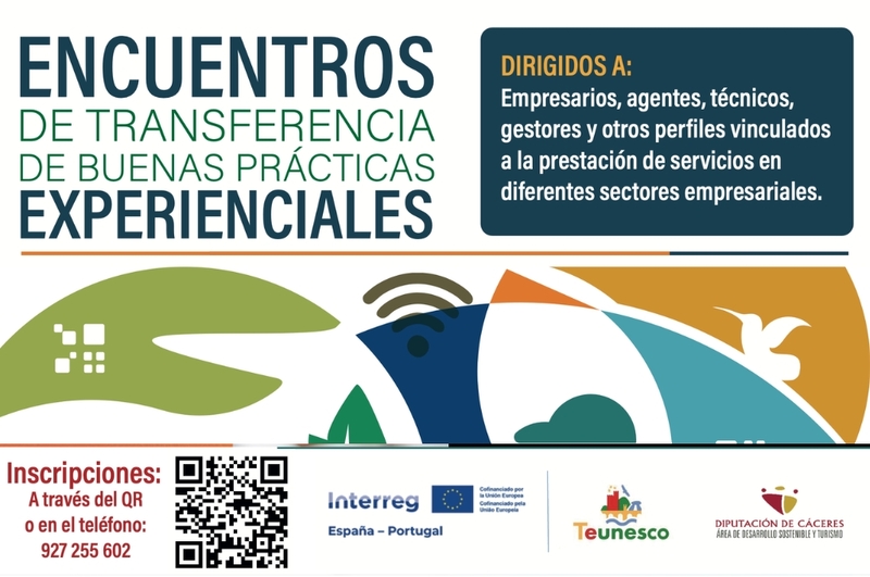 • La Diputación Provincial de Cáceres, a través del proyecto TEUNESCO, cofinanciado por la Unión Europea mediante el Programa Interreg VI-A España-Portugal (POCTEP) 2021-2027, organiza una serie de Encuentros de transferencia de buenas prácticas experienciales en los Territorios UNESCO de la provincia de Cáceres. El principal objetivo de esta iniciativa es el de compartir experiencias, conocimientos y herramientas relacionadas con la sostenibilidad, la digitalización, el uso de las TIC, el marketing online y la adaptación al cambio climático.