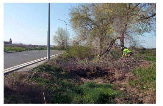 El tramo sobre el que se está actuando tienen una longitud aproximada de 1.160 metros, en el que se vegetación anual como las zarzas, originando acumulaciones vegetales en la zona del cauce provocando la retención del flujo hidráulico y desbordamientos.